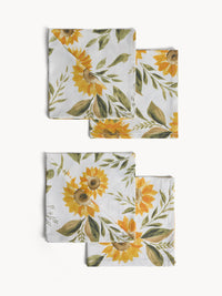 Set of 4 cotton panama napkins with sunflower print - S/4 / #N/A