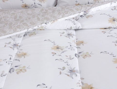 Bring a blend of comfort and style to your bedroom with our 200 thread count (TC) printed comforter set, crafted from 100% cotton. Featuring a reversible design, this versatile comforter offers two stylish looks in one. The breathable cotton fabric ensures a cozy and restful night's sleep. Complete the look with our matching fitted sheet, available separately.