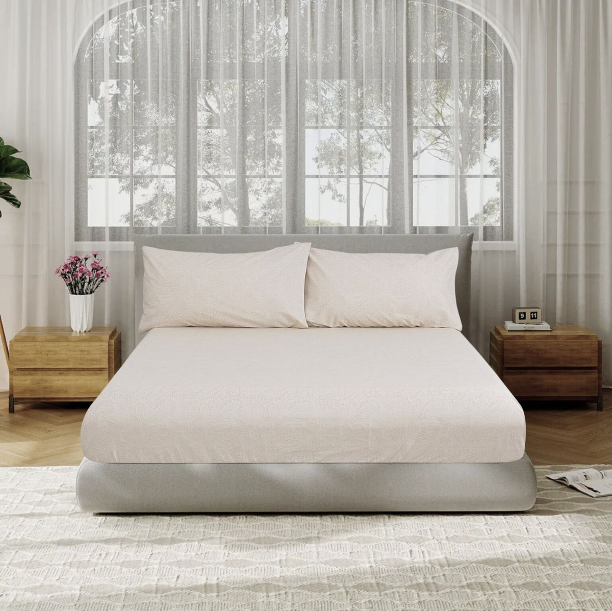 Sleep in comfort and style with our 200 thread count (TC) printed fitted sheet set, crafted from 100% pure cotton for a soft and breathable feel. The set includes a fitted sheet with a vibrant, long-lasting print and matching pillowcases, ensuring a perfect blend of style and functionality. Pair it with our matching duvet cover or comforter for a complete, coordinated look.