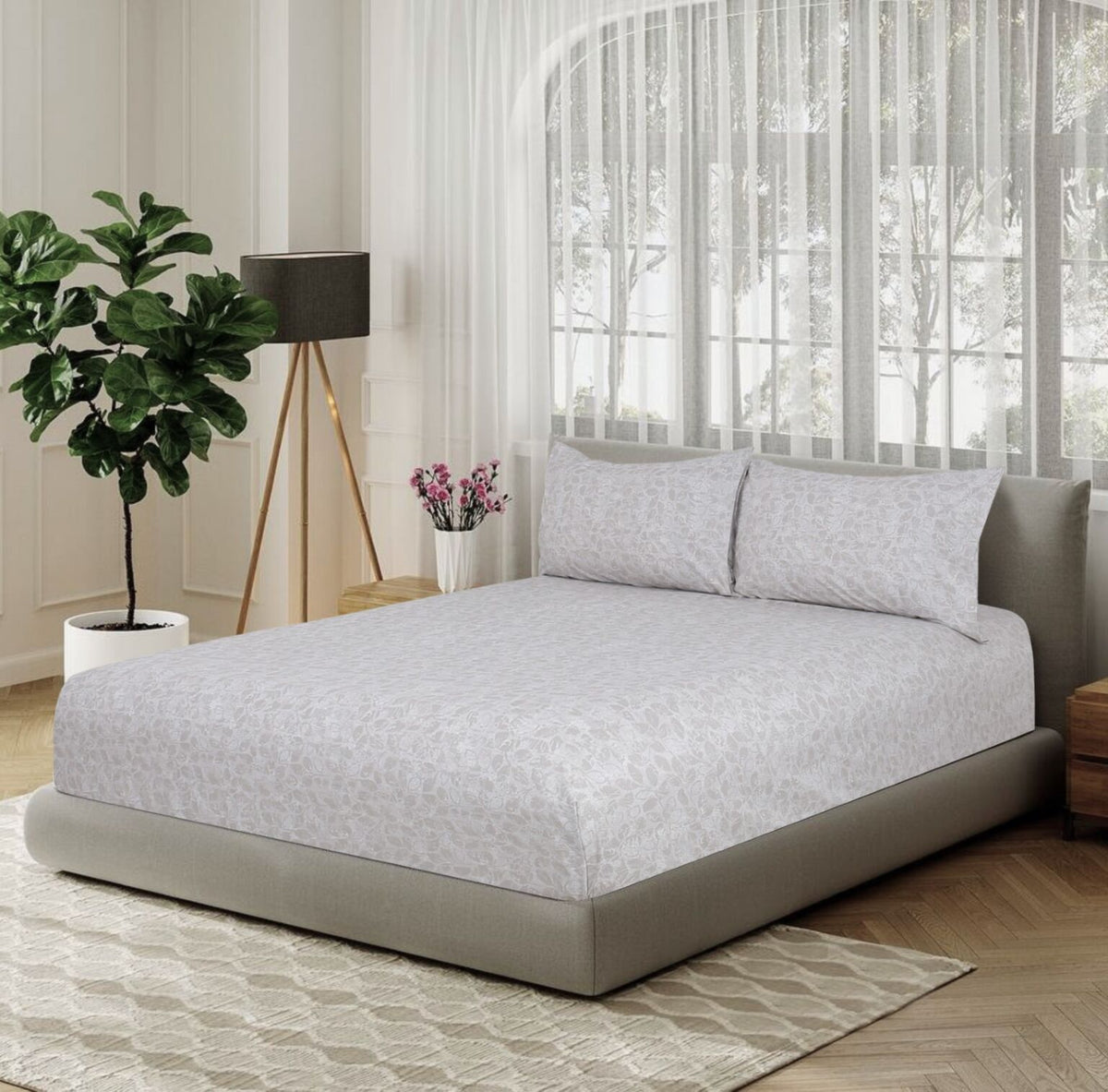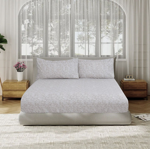 Sleep in comfort and style with our 200 thread count (TC) printed fitted sheet set, crafted from 100% pure cotton for a soft and breathable feel. The set includes a fitted sheet with a vibrant, long-lasting print and matching pillowcases, ensuring a perfect blend of style and functionality. Pair it with our matching duvet cover or comforter for a complete, coordinated look.