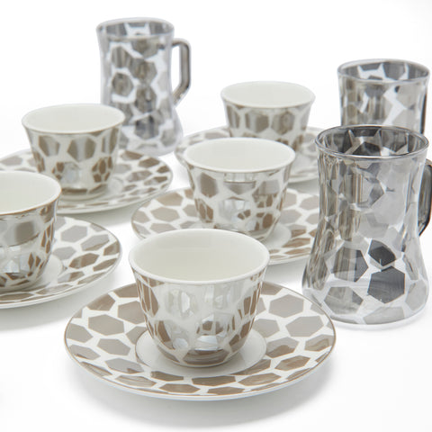 Casablanca Hexagonal Print Cawa Coffee Cup Set Of 18 ( Brown) - S/18 / Brown