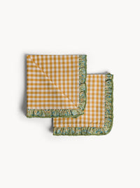 Set of 2 pure cotton gingham napkins with floral ruffle - 45x45CM / #N/A