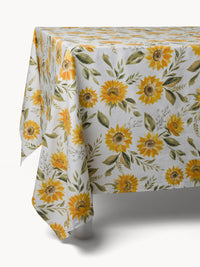 Cotton panama tablecloth with sunflower print - 140x250CM / #N/A