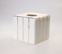 Gold Line Tissue Box - 15.3x15.3x14.2cm / White/Gold