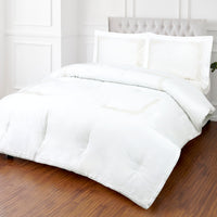LEANE EMBROIDERED 4PC COMFORTER SET - Comforter 240 x 220 CM Fitted Sheet 180 x 200 CM Pillow case 50 x 80 CM / White/Beige