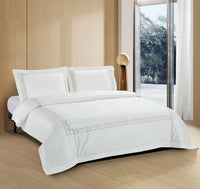 CORAL EMBROIDERED DUVET COVER SET - GREY - Size - Super King Duvet Cover 260 x 240 CM Fitted Sheet 200 x 200 CM Pillow case 50 x 80 CM / White/Grey