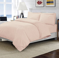 3 PCS LUXURIOUS 300 THREAD COUNT BAMBOO SATEEN THIN STRIPE DUVET COVER SET - Super King Duvet Cover - 260 x 240 CM, Pillow cases 50 x 80 CM / Pale Coral