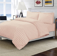 LUXURIOUS 300 THREAD COUNT BAMBOO SATEEN WIDE STRIPE DUVET COVER SET - 3 PIECE COLLECTION - Super King Duvet Cover - 260 x 240 CM, Pillow cases 50 x 80 CM / Pale Coral